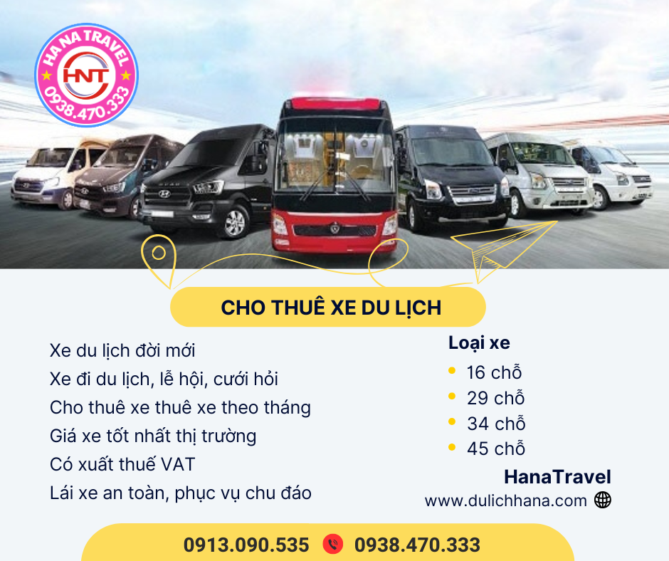 Công ty du lịch HanaTravel là một trong những đơn vị cung cấp dịch vụ cho thuê xe 16 chỗ và loại xe 18 chỗ uy tín tại Ninh Bình. Với đội ngũ lái xe chuyên nghiệp, phong cách phục vụ chu đáo và giá cả hợp lý, công ty đã được nhiều khách hàng tin tưởng và lựa chọn.