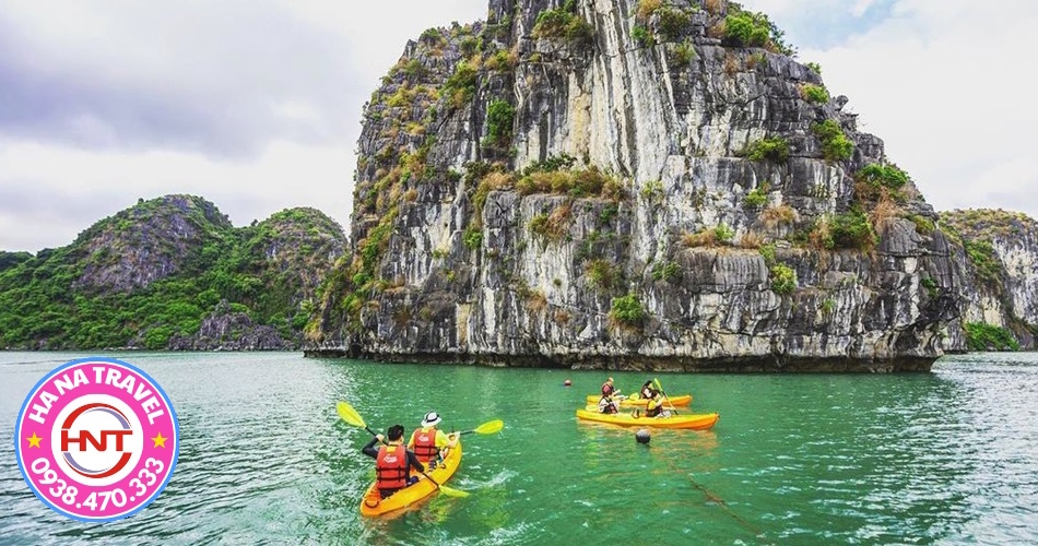 +08:30: Xe đón quý khách đến bến tàu, đoàn lên tàu thăm vịnh Lan Hạ. Quý khách sẽ thấy một phong cảnh “sơn thuỷ hữu tình” với những bãi cát trắng muốt, trải dài, đan xen là những hòn đảo muôn hình vạn trạng: Lão Vọng, Rùa, Hòn Gió, làng chài… ngắm cảnh và chụp hình trên bom tàu, Không gian tại đây thực sự cho quý khách một trải nghiệm không thể nào quên. Tại đây quý khách trải nghiệm chèo thuyền kayak (phí chèo thuyền 50k)