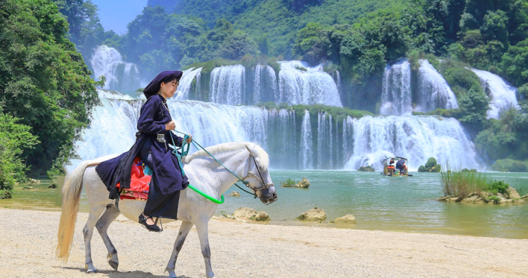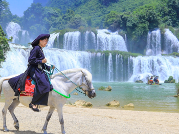 +10h30: Đoàn di chuyển vào Thác Bản Giốc. Thác có độ cao 53m, chia làm 3 tầng được coi là một trong những thác nước đẹp nhất Việt Nam và cũng là thác nước lớn thứ 4 trong top 10 thác nước kỳ vĩ nhất trên thế giới nằm trên đường biên giới giữa hai quốc gia.